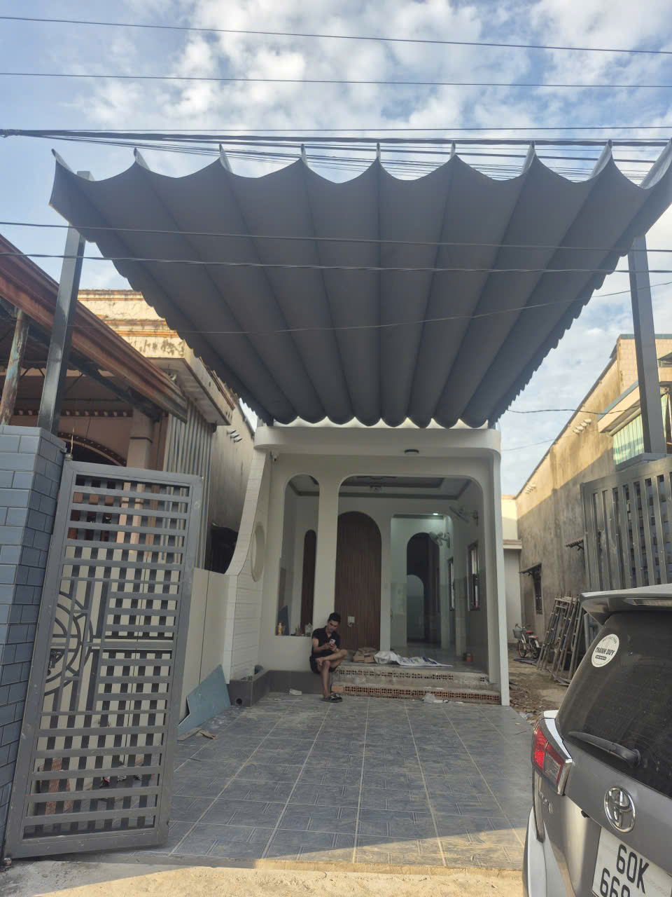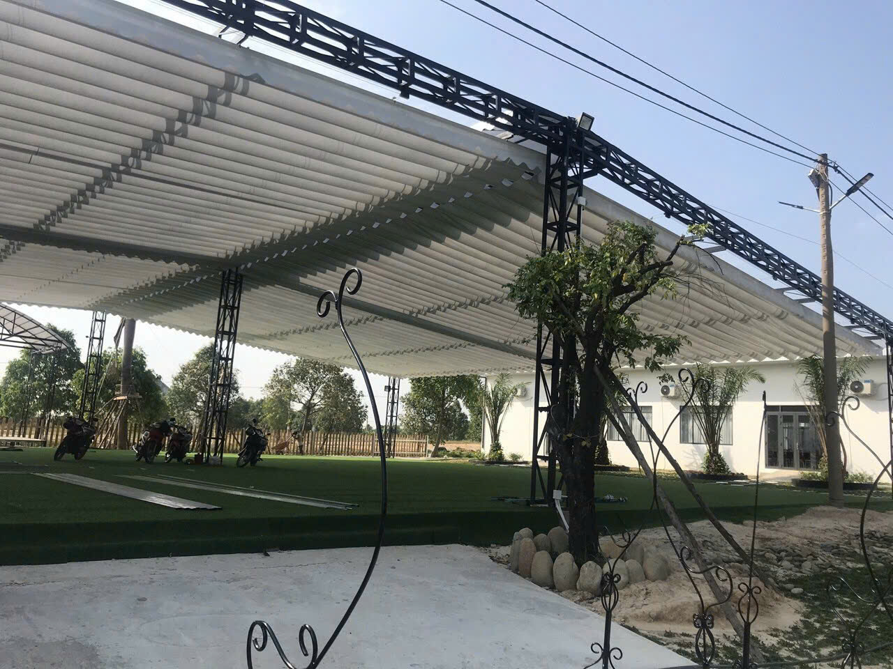 - Tiến hành thi công mái che cho khách hàng.
